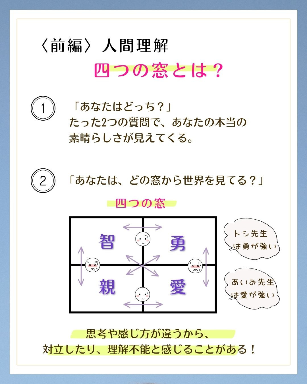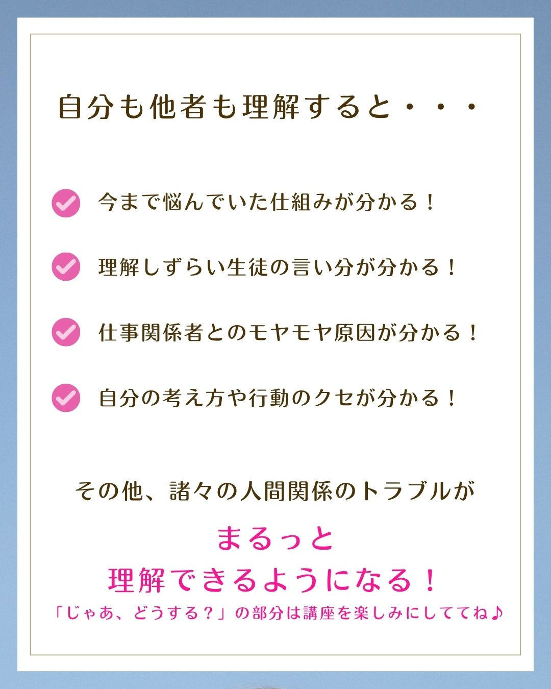 理論的に理解し、人との関わり方のヒントを見つけていきます。